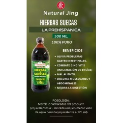 Las hierbas suecas son un compuesto de 6 plantas medicinales que ayudan a aliviar diferentes tipos de padecimientos internos como externos. Internamente este producto le ayuda a aliviar distintos problemas gastrointestinales como gastritis, digestión lenta, estreñimiento, elimina gases, alivia dolores abdominales, así como trata ulceras gástricas, también es excelente en el control de gingivitis (inflamación de encías) y mal aliento. Externamente es usado para aliviar moretones, mejora la cicatrización de heridas y alivia infecciones en los ojos o “lagañas”.