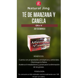 Infusiones: Su consumo al día indicado son 100 ml por un sobre de té de Manzana y canela.